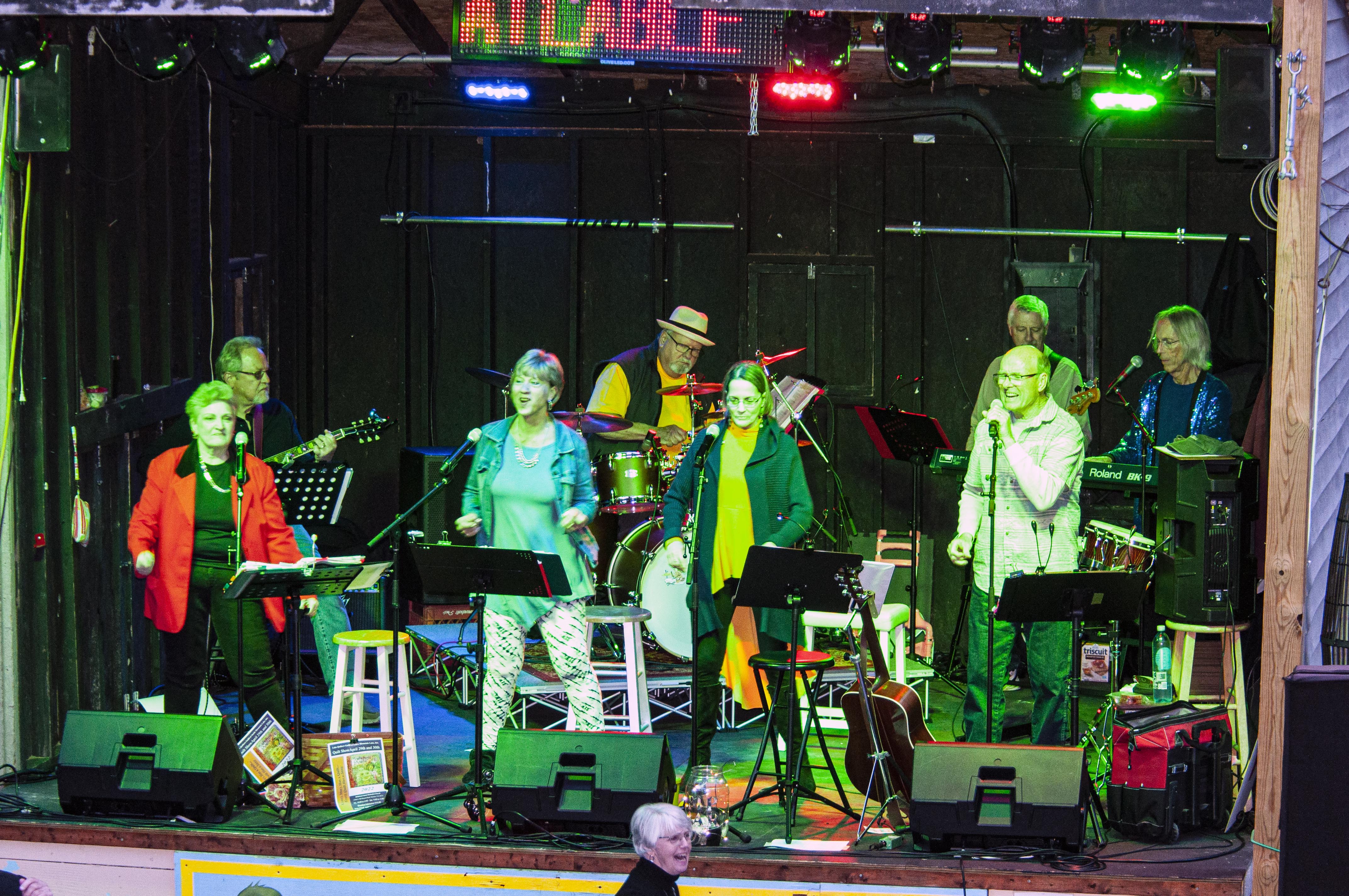 The SML Boomer band playing on stage.